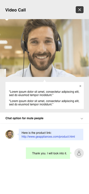 A video call feature embedded on the GE Appliances website, easily and quickly accessible by the users for assistance